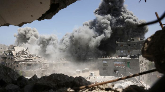 গাজায় নিহতদের অর্ধেকই ইসরায়েল ঘোষিত ‘নিরাপদ এলাকায়’ ইসরায়েলি সেনাবাহিনী জোরপূর্বক উচ্ছেদের নির্দেশ জারির পর গাজা সিটির একটি বহুতল ভবনে বিমান হামলার সময় ফিলিস্তিনিরা আশ্রয়ের জন্য দৌড়াচ্ছে। শনিবার গাজা উপত্যকাজুড়ে ইসরায়েলের