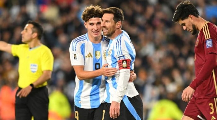 ঘরের মাঠে সম্ভাব্য ‘শেষ ‘ ম্যাচ খেলতে নেমেছিলেন লিওনেল মেসি। ক্যারিয়ারের শেষ বেলায় এসেও মাঠে সবটুকু আলো কাড়লেন, নিজেকে উজাড় করে দিয়ে পেলেন জোড়া গোল। মেসি ম্যাজিকের সঙ্গে জালের দেখা