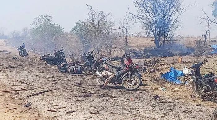 মিয়ানমারে একটি উৎসব ও বিক্ষোভ অনুষ্ঠানে সোমবার সন্ধ্যায় সামরিক বাহিনীর বিমান হামলায় অন্তত ৪০ জন নিহত হয়েছেন। এই হামলায় আরও প্রায় ৮০ জন আহত হয়েছেন। নিহতদের মধ্যে বেশ কিছু শিশুও
