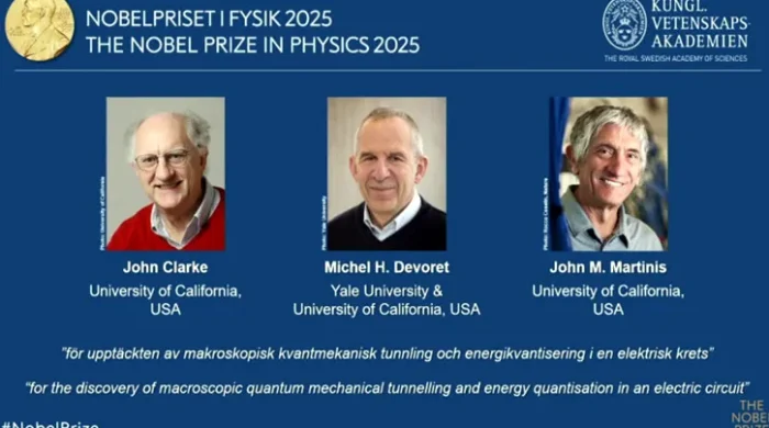 চলতি বছর পদার্থবিজ্ঞানে তিন জন যুগ্মভাবে নোবেল পুরস্কার পেয়েছেন। মঙ্গলবার সুইডিশ রয়েল একাডেমি অব সায়েন্স এবারের বিজয়ী হিসেবে জন ক্লার্ক, মিশেল এইচ. ডেভোরেট এবং জন এম. মার্টিনিসের নাম ঘোষণা করেছে।