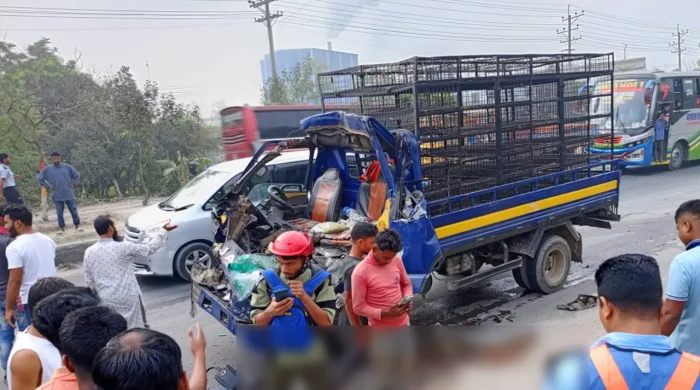 গাজীপুরের সদরে দাঁড়িয়ে থাকা ট্রাকে মুরগিবাহী পিকআপের ধাক্কায় হেলপার ও ব্যবসায়ী নিহত হয়েছেন। শুক্রবার (২৮ মার্চ) সকাল ৭টার দিকে সদর উপজেলার হোতাপাড়া এলাকায় ঢাকা-ময়মনসিংহ মহাসড়কের সানপাওয়ার সিরামিকস কারখানার সামনে এ