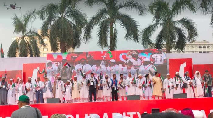 রাজধানীর ঐতিহাসিক সোহরাওয়ার্দী উদ্যানে ফিলিস্তিনিদের জন্য দোয়া চেয়ে শেষ হলো মার্চ ফর গাজা কর্মসূচি। দল-মত নির্বিশেষে এতে অংশ নেন ফিলিস্তিনপ্রেমী লাখো জনতা। শনিবার (১২ এপ্রিল) বিকাল ৩টা ৫০ মিনিট থেকে