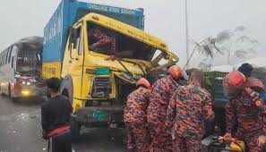 মুন্সীগঞ্জ : মুন্সীগঞ্জের কামারখোলায় ঘন কুয়াশার কারণে ৫টি যানবাহনের সংঘর্ষের ঘটনা ঘটেছে। এ সময় আহত হয়েছেন অন্তত ২০ জন। সোমবার (১৭ ফেব্রুয়ারি) সকাল পৌনে ৮টার দিকে কামারখোলায় ঢাকা-মাওয়া এক্সপ্রেসওয়েতে এ